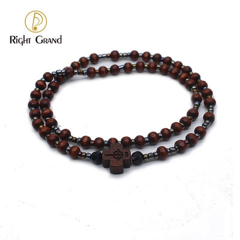 โซ่ลูกปัดวินเทจยูนิเซ็กซ์ทำด้วยมือทำจากไม้และเชือกยืดหยุ่นหลายชั้นสร้อยข้อมือประดับโบสถ์คริสเตียนของขวัญ