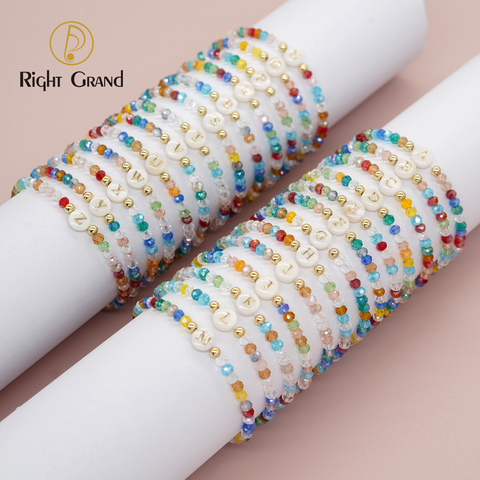 ขายร้อนทําด้วยมือเชือกยืดหยุ่นกําไลข้อมือเครื่องประดับเชลล์คริสตัลสีสันสดใสลูกปัด AZ 26 ตัวอักษรภาษาอังกฤษสร้อยข้อมือ