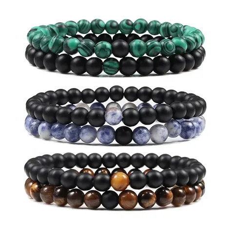 สร้อยข้อมือหินลาวาธรรมชาติ,กำไลข้อมือร้อยลูกปัดเสือเครื่องประดับเชือกยืดหยุ่นสำหรับผู้ชายผู้หญิง