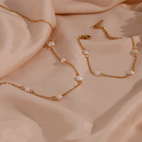 กันน้ําไม่มีจางหาย 18K ชุบทองลูกปัดสแตนเลสสร้อยคอโซ่มุกน้ําจืดและสร้อยข้อมือชุดเครื่องประดับ